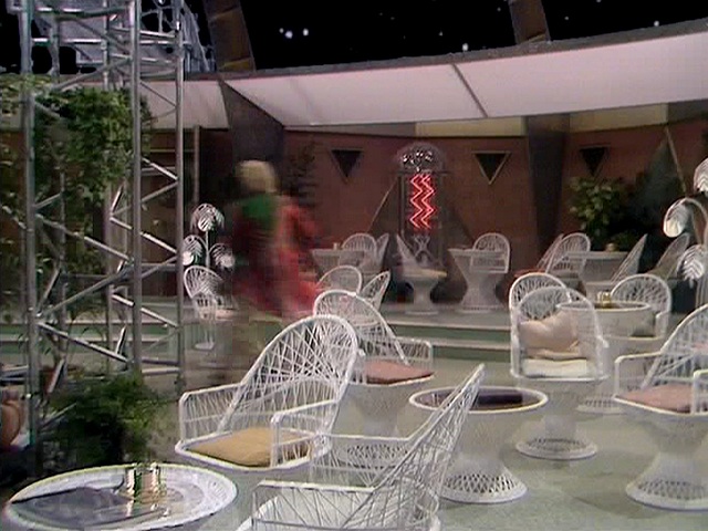 Something happened following the ‘great hiatus of 1985’. The number of chairs seemed to decline. Well, the identifiable ones anyway. In fact, there were still plenty of contemporary seating to be observed, but in many instances, the production team moved away from relying on retro ‘design classics’ towards a postmodern approach, where the designs stick out because of their apparent unsuitability to the settings and timeframe in which they are placed.