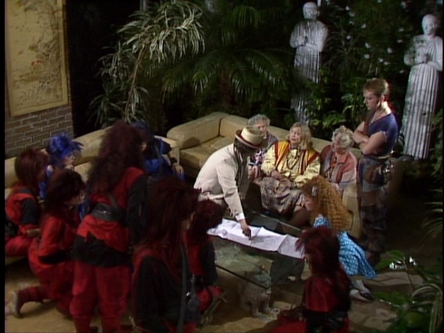Alas I couldn’t detect any of the artefacts from the ‘Fantasy Factory’, with a wooden chair mostly obscured by the ample posterior of Geoffrey Hughes.