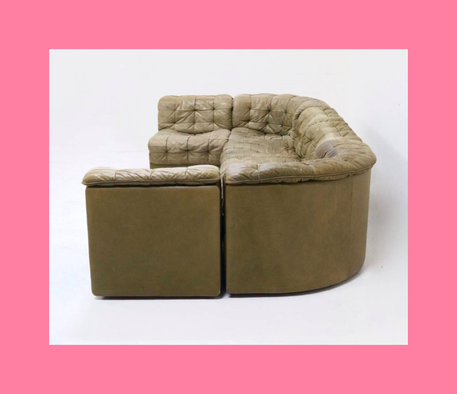 Annoyingly there is a beige squared leather couch which is undetectable. It’s similar to a 1970s HK Diplomat Sofa, by Howard Keith. But I’m not convinced that it is.