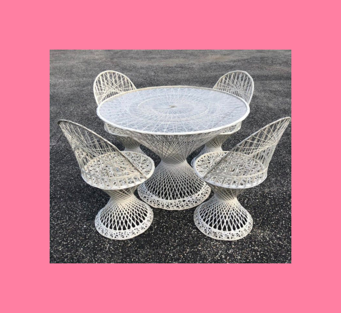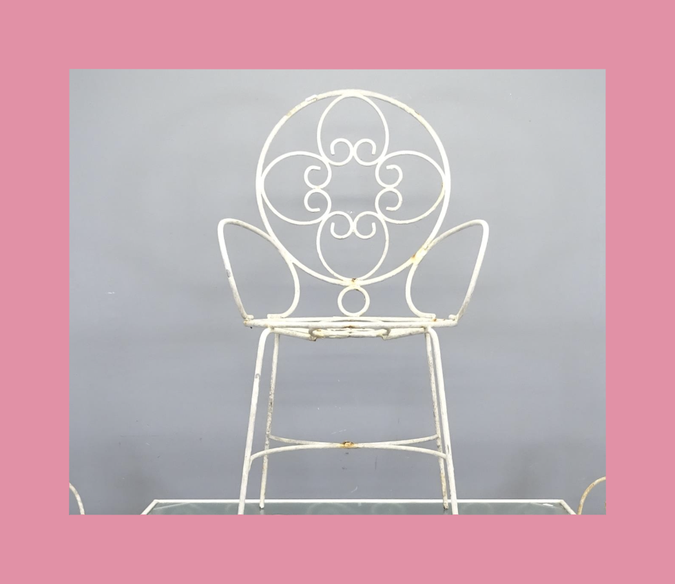 There are plenty of French wire garden chairs in the cafe, I’ve found the chair, it dates from the 1950s, although the exact manufacturer cannot be identified. I mean why should it? I’m only attempting to find some antique garden furniture that appeared in an episode of a science fiction series of the 1980s, on a blog about chairs!