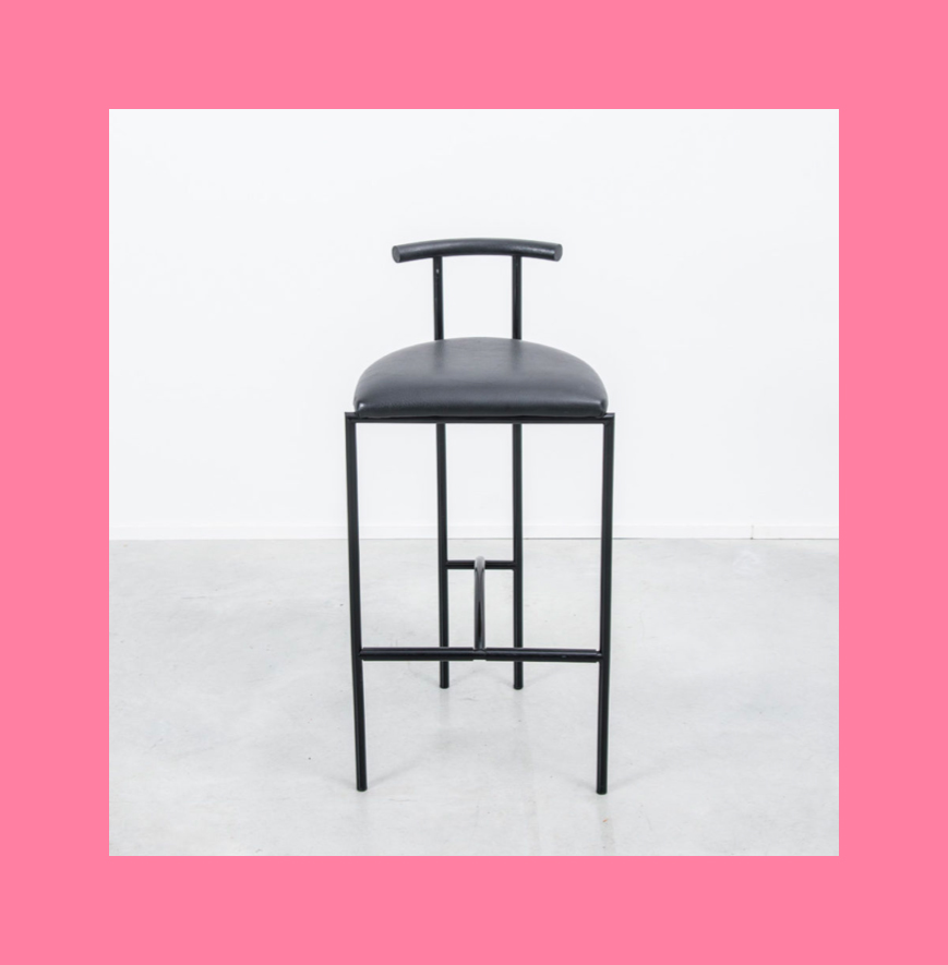 1985 Tokyo bar Stools designed by Rodney Kinsman for the Italian manufacturer Bieffeplast, are featured in the office. Made from a black powder coated steel tubular steel frame with a black vinyl seat, they were originally designed for London’s Groucho club.