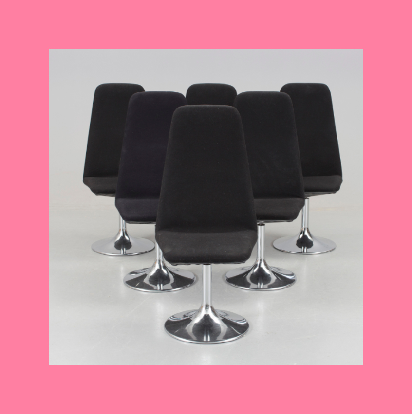 Either side of it is a Viggen chair, deigned by Börje Johanson for Johanson Design in the 1970s.
