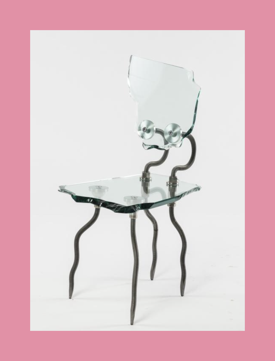 This suitably icy looking chair is a beautiful work of art. It’s a glass seated, stainless steel and duralumin framed ‘Etruscan’ chair, by Danny Lane. Designed in 1984. this chair saw a number of different forms, and it is likely that this was ‘hot off the press’ so to speak.