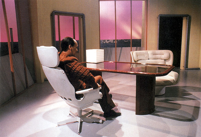 When you get past all his hysterical shouting, Davros clearly has a keen sense of style, as he retains this inherited S70-3 stool by Borge Lindau and Bo Lindekrantz, for Lammhults. This tubular chrome design dates from 1968, although I feel sure that wasn’t at the forefront of Davros’ mind.