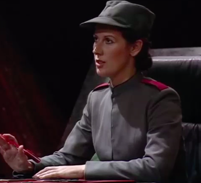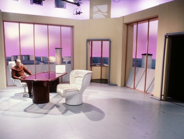 Meanwhile, in the Helen Blatch control centre, there is an array of black office chairs, including what looks like swivel chairs based on a 1960 ‘Canasta’ armchair. These have a tulip base, so I can’t firmly identify them. Blatch herself sits on what looks like a generic 1970’s upholstered executive chair. For my eyes, it looks a bit meh, therefore it’s probably a design classic.