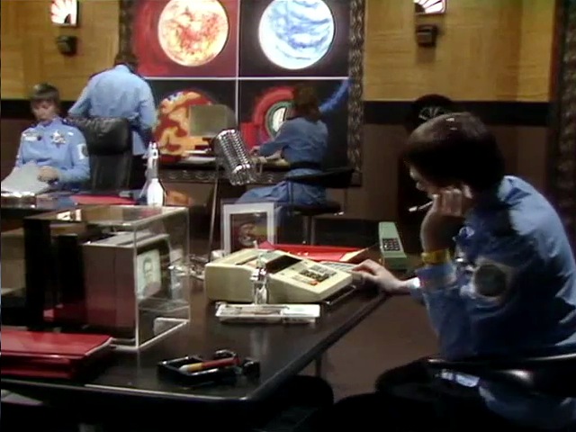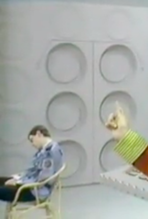 This drafting stool has popped up a few times in Peter Davison’s era, as a bit part player. However, in ‘Warriors of the Deep’, it gets a moment in the sun. It is an Italian ‘Polo stool’ by Paolo Parigi, for Parigi Heron. This self explanatory 1975 design consisted of a black metal base on castors, perforated seat, black rubber back rest, and was bloomin’ difficult to find, I can tell you. After weeks of searching, I actually squealed when I found it. Not an attractive image I know, but a realistic one, I’m afraid.