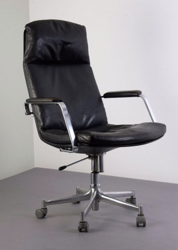 Initially, Frontios, was one of those stories where I couldn’t firmly identify the two black office/desk swivel chairs on show. The one by the main entrance, looked similar to a FK-86 Leather Lounge Chair by Preben Fabricius & Jørgen Kastholm. But I was still unsure.