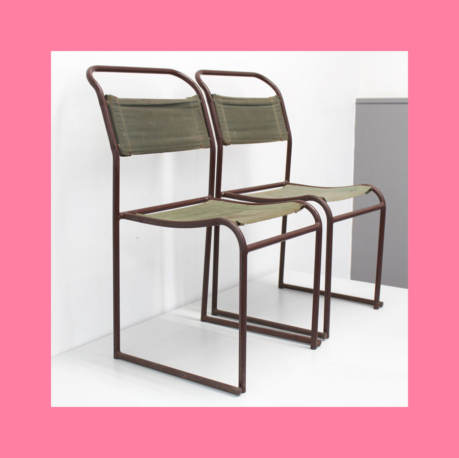 The chairs featured on the transmitted version are also made by PEL. These British made chairs were designed by Bruno Pollak in the 1930’s, using steel and canvas.