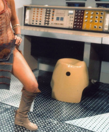 And there are some other mysteries, including this fibreglass seat that also features in Blake’s 7 frequently. I’m still searching for this design, but it’s a good excuse to put up this image of a Domus Danica chair by Nanna Ditzel.