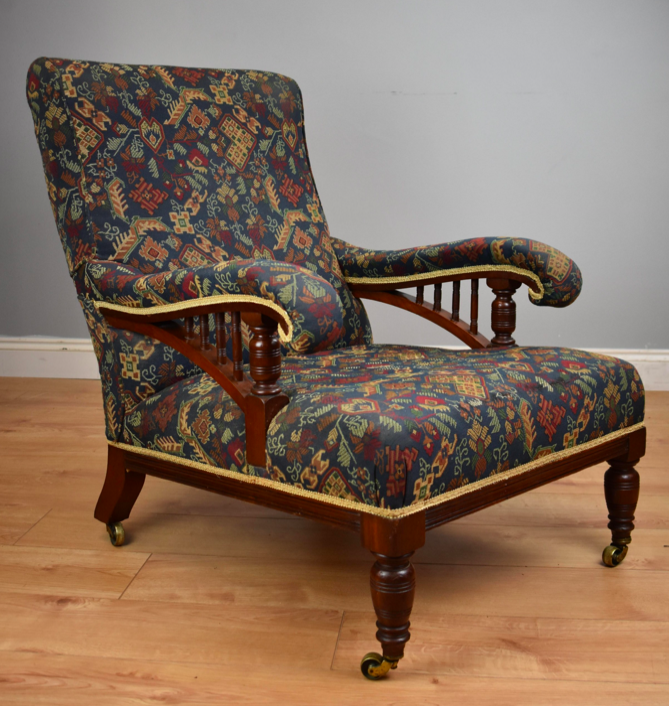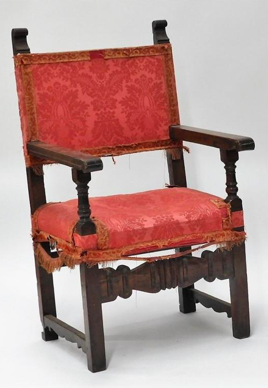 We have a collection of Edwardian ephemera to feast our eyes on. Exact matches are difficult, but Mahogany Howard style armchairs / library chairs can be glimpsed, alongside artefacts from an even earlier era. A good example is a 19th century renaissance style wooden throne chair, which is a nice touch, as Laurence Scarman was clearly a privileged collector of things.