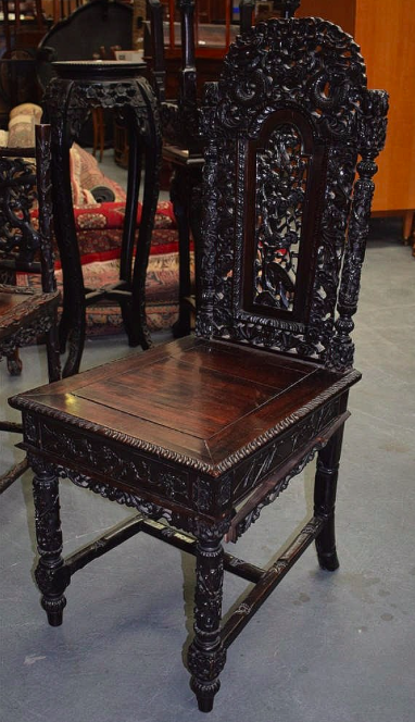 Intricately carved ‘hongmu’ (rosewood) throne chairs.