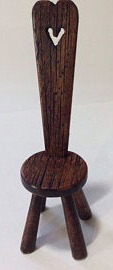 This was a fascinating puzzle. I reckon these chairs were custom built props, but what was the influence? My explorations took in Strozzi stools, plank chairs, Medieval, Norse and Ango Saxon. In the end I’ve gone for a cross between a Renaissance era Sgabello chair and an ‘arts and craft’ Welsh Spinning Chair.