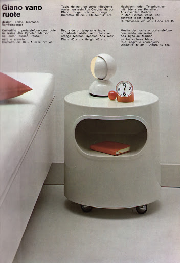 This is a nice thing. A Giano Vano side table designed by Emma Gismondi Schweinberger for Artemide Milano. It’ll feature again in Doctor Who, notably on the Bi-al foundation.