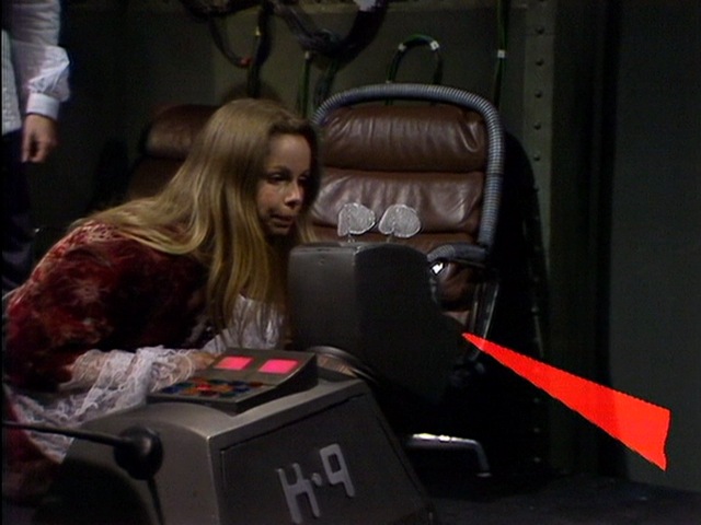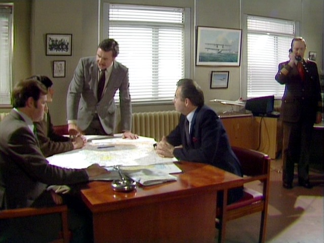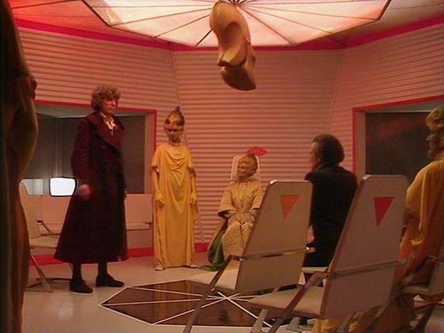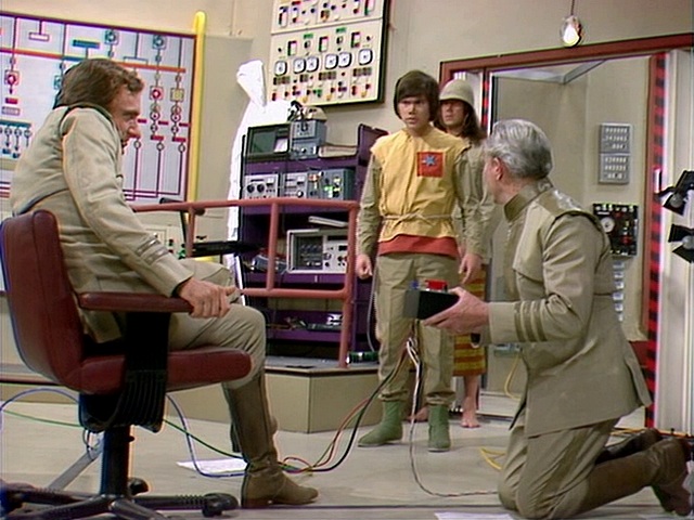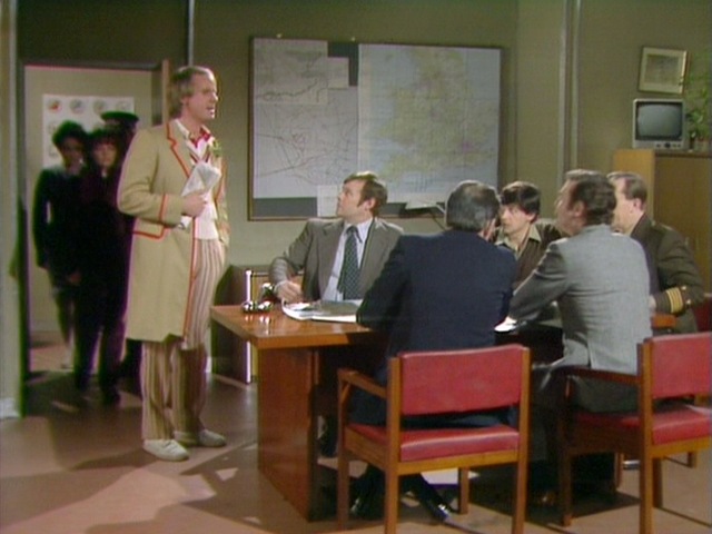 This story marks the debut of a chair that will be synonymous with the early JNT era. This is Heron Parigi’s ‘Polo’ drafting chair, from 1975. You’ll be seeing it a lot throughout this blog post, and there’s more in the post about season 21. For now, you just get to see a little taster poking up at the bottom of the frame.