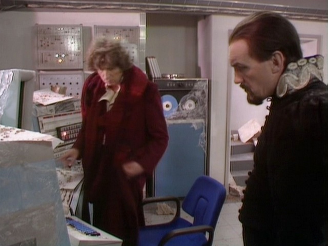 On the other side of the control room are some familiar ergonomic ‘Vitromat’ chairs – see ‘Logopolis’ for more on these important 1970’s designs.