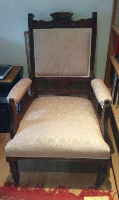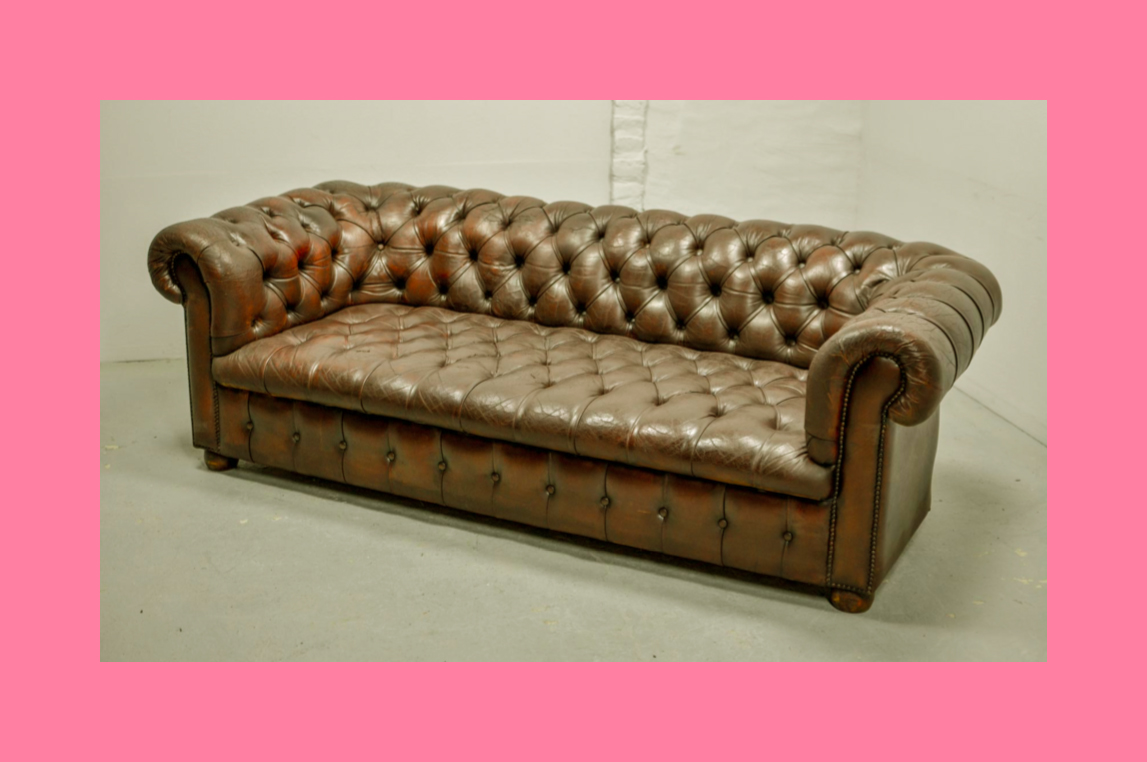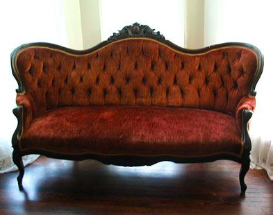 And we have an upholstered Victorian tufted sofa, and library chairs.