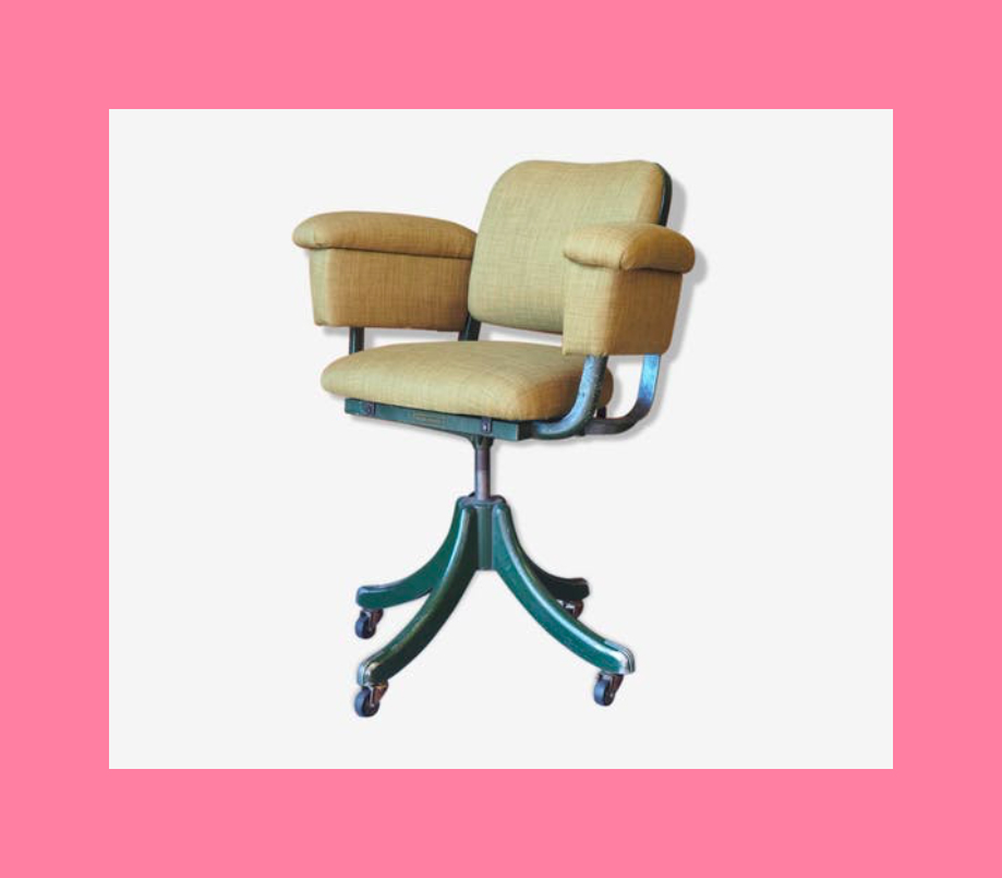 Meanwhile at the top of the tower, we can glimpse a Tan-Sad industrial office chair, probably dating from the 1950’s.