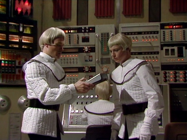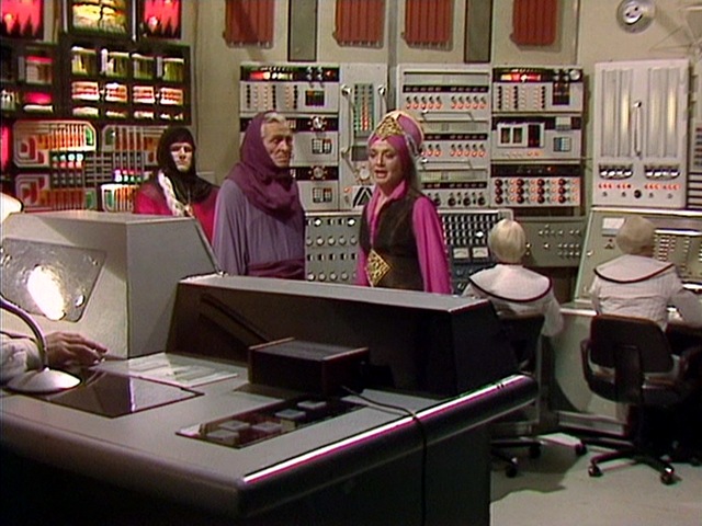 It’s worth noting a few little extra set dressings, such as the microfiche readers, the drawers also seen in the final episode of Blake’s 7, and the trusty Sorella lamp – a mainstay of UK sci-fi.