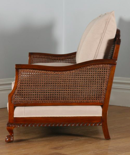 We have Edwardian desk chairs, and a George V three-piece mahogany bergere cane suite, roughly circa 1910. A bergère is an enclosed upholstered French armchair with an upholstered back and armrests on upholstered frames. You learn something new every day.