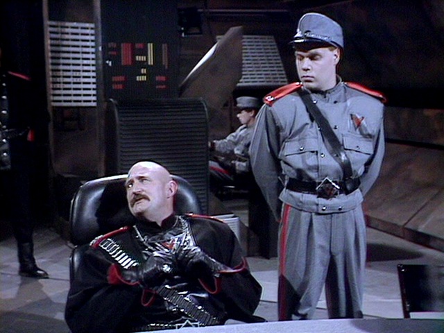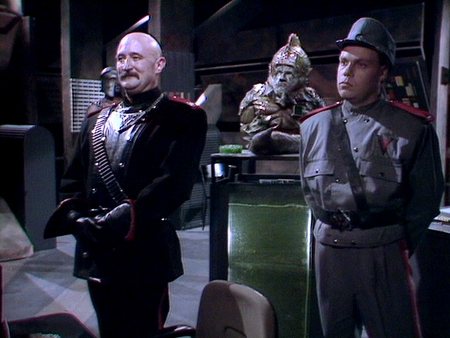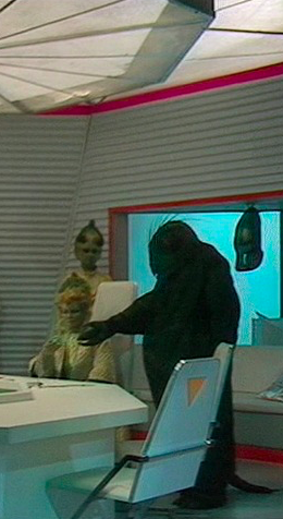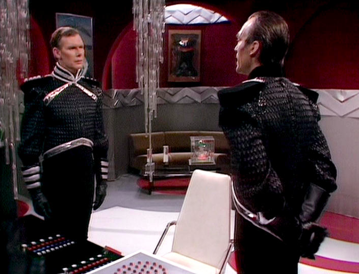 Charles Pollack’s high backed Comforto, last seen as the Marshall’s big, bad, red chair in ‘The Armageddon Factor’, also reappears, this time in black.