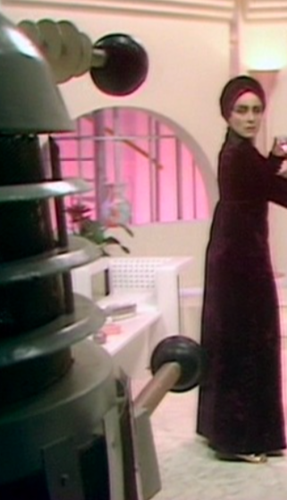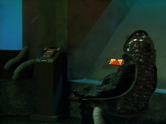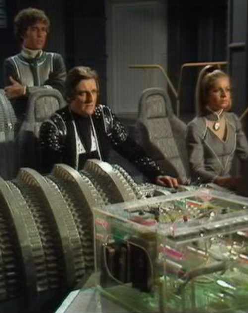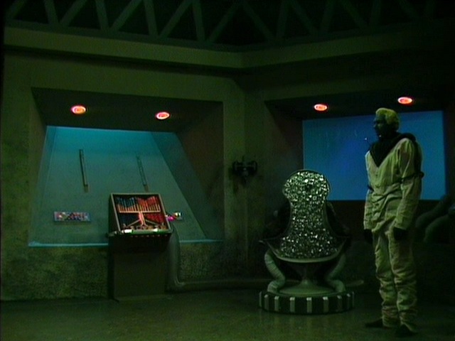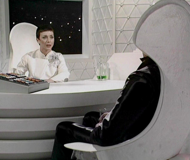 As far as I can tell, we first see it in ‘The Three Doctors’ (recorded in 1972) and it is more familiar to me as Servalan’s chair in season B of Blake’s 7. Here it is given a bit of bling, and is the last time I have seen it on screen.