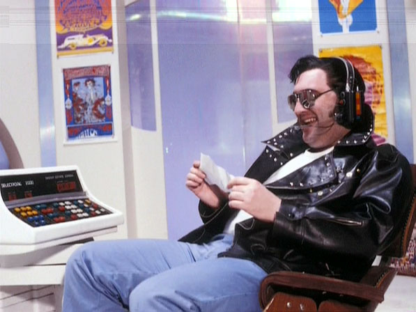 The DJ and his surroundings are a fabulous tribute to 1960’s design.