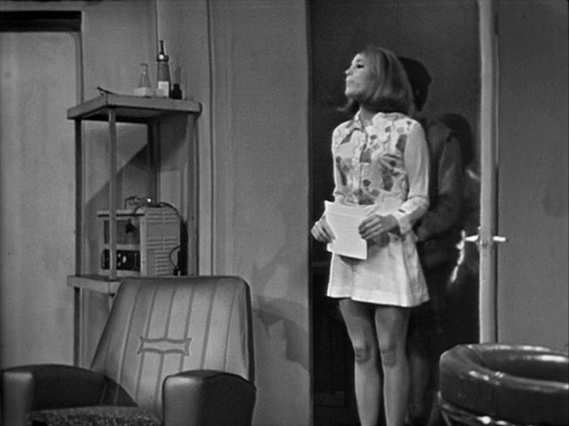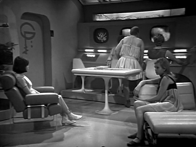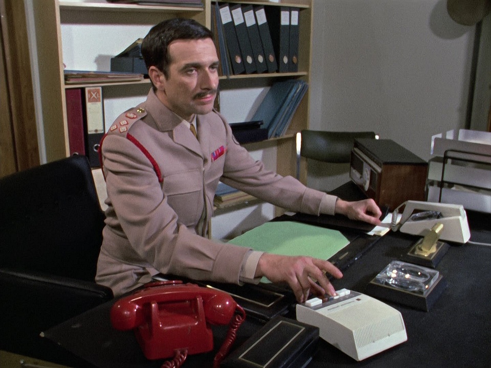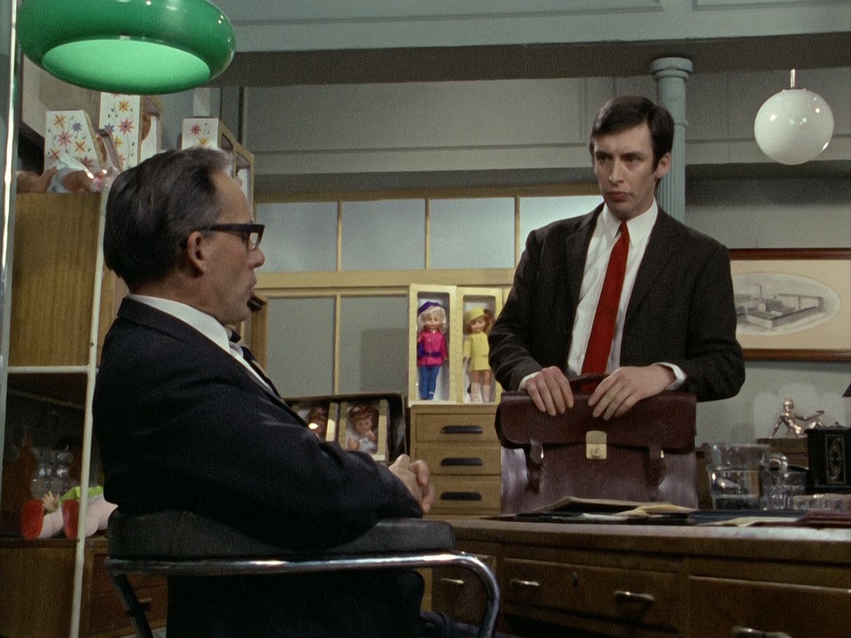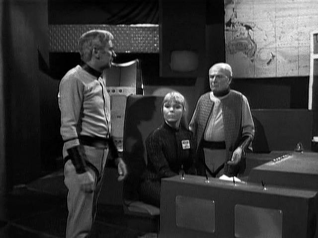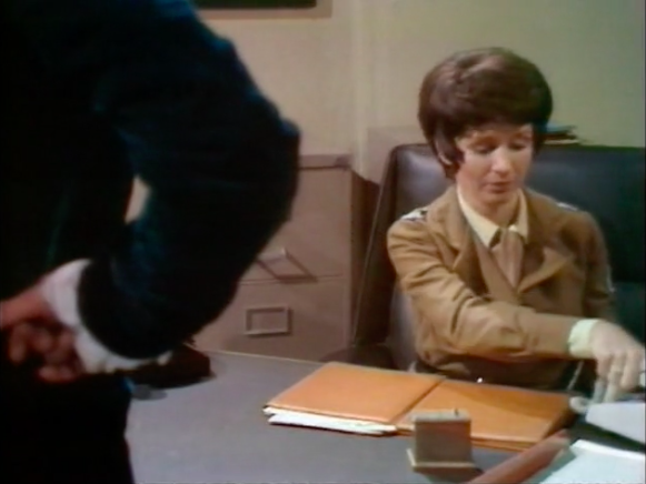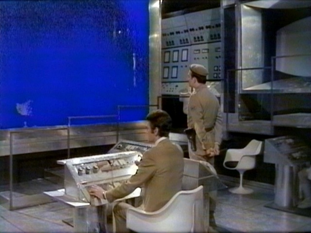 We start with some generic 1960s office chairs. The Brig seems to be sitting in something more contemporary, although we just don’t get to see enough.