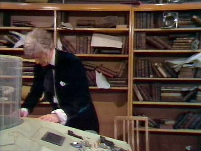 These oak dining chairs are mainstays of season 7 – I will talk a bit more about them in ‘Inferno’. They will pop up again in ‘Invasion of the Dinosaurs’.
