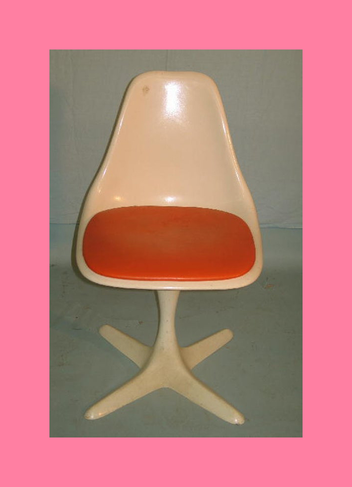 At first glance these white chairs look like the ‘Tulip’ chair by Eero Saarinen. But the shape of the back rest is slightly different. In the end the chairs can be traced to (Maurice) Burke Inc, Dallas, Texas.
