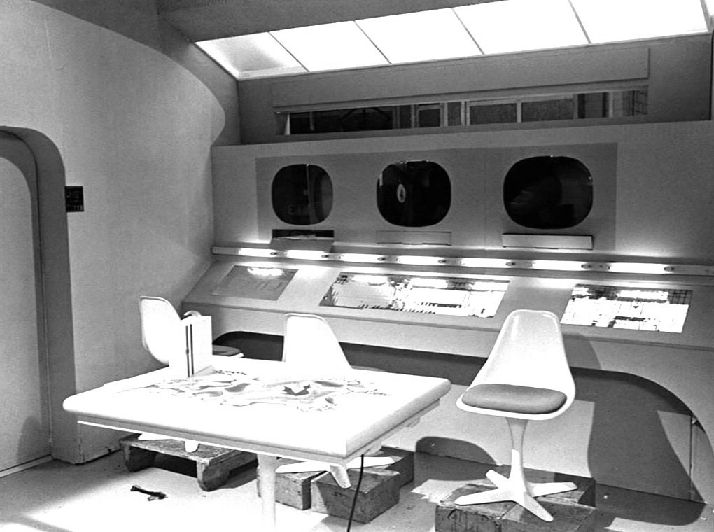 This plastic bar stool looks like it is based on an Eames design. However an exact match is out of reach. As an aside, I’m sure this desk features in ‘The Ark in Space’ and two Blake’s 7 episodes – ‘Hostage’ and ‘Countdown’.