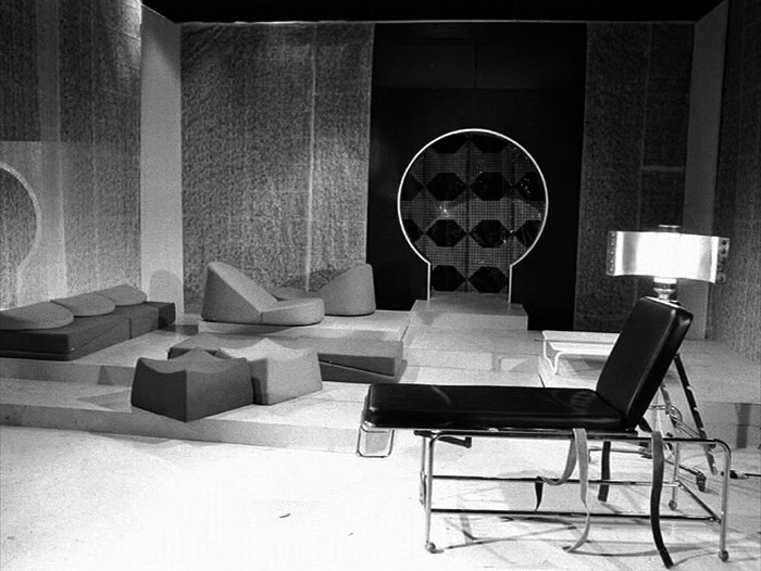 Later in this epic story we have another Robin Day design, a 1960’s swivel chair for Hille. Clearly there is was bulk buy of Day’s designs in the prop warehouse in the late 1960’s.