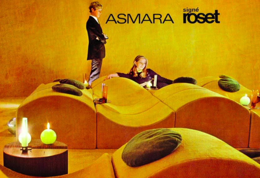 This modular lounge furniture has many leads. Bernard Govin’s, Asmara Modular furniture (1966) is a good place to start. However the shapes are slightly different. It’s also similar to the Luigi Colani Pool Sofa. It might be custom built, although the search continues for the exact match.