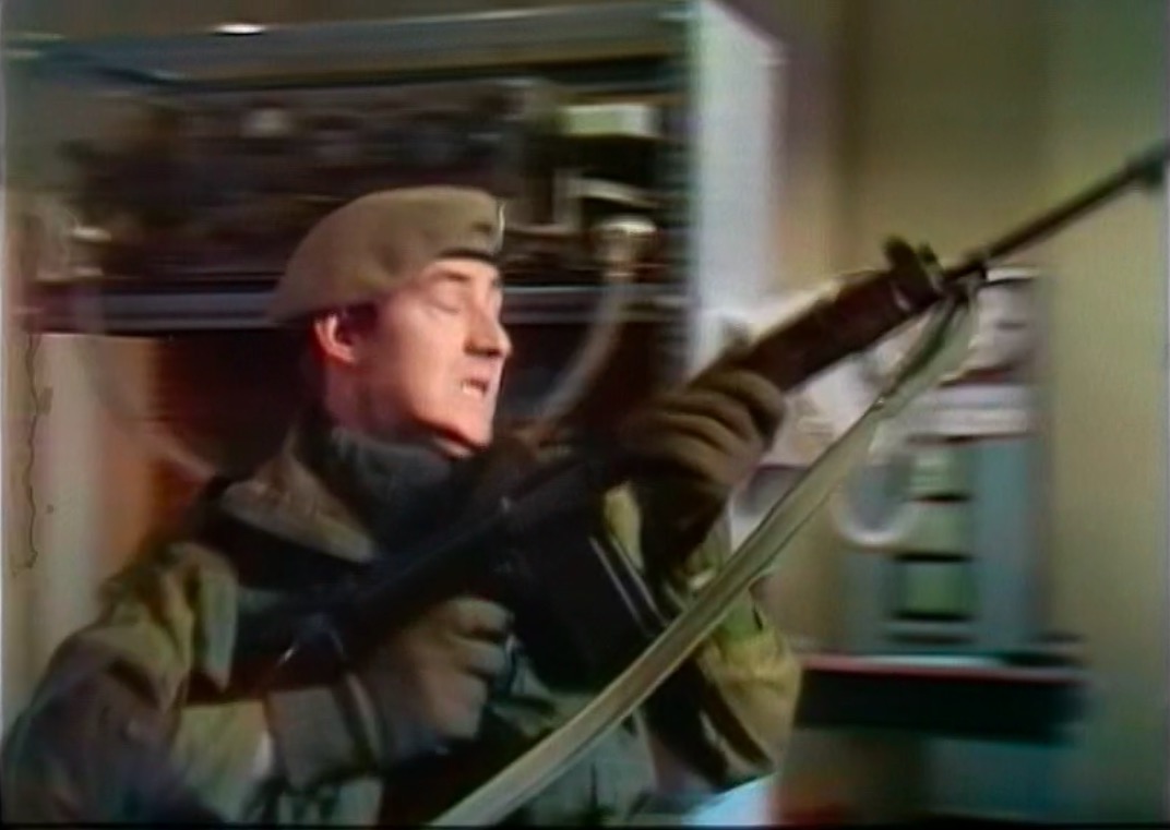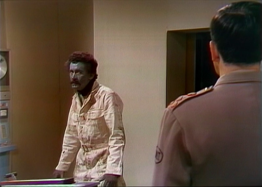 Back in the switch room, events are starting to take a menacing turn, establishing a key threat of the serial. The Brig and Doc note Wyatt and Bromley slumped against the wall. Bromley might be unconscious, but I remember watching this shot for the first time, and thinking that he’ll be active soon enough.