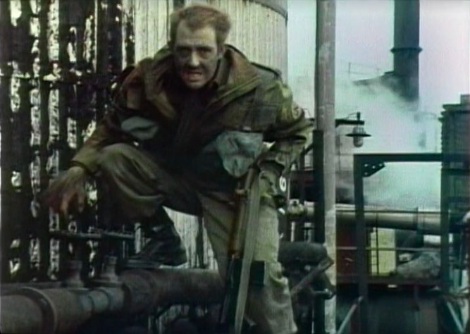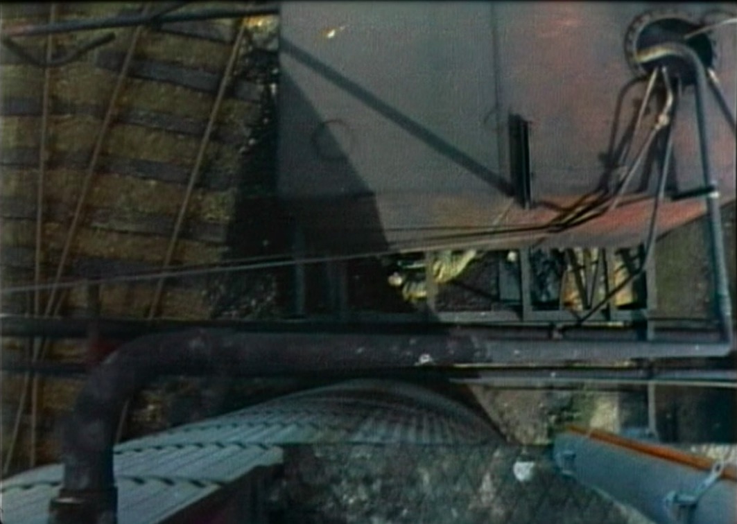 And so we have the first ‘signature’ scene of Inferno. The Doctor Vs Primord in a confined space – proper behind the sofa material. Once more, Pertwee is convincing, but again it is the body language of the proto-Primords that is the selling point – in this case Wyatt suddenly turns modern weaponry into primitive club, and the one-leg-on-the-pipe pose just before he jumps onto the ledge is chilling.