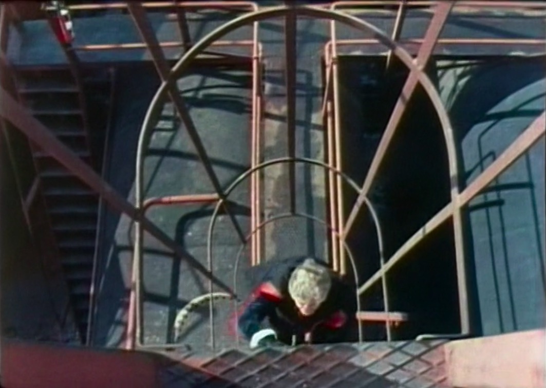 Within seconds, Pertwee is on the move, trying to control his vertigo, while Camfield treats us to some lovely shots as The Doctor pursues Wyatt across the walkways. Apart from one single shot where The Doctor is moving along a long platform, with his hand tight on the railings, Pertwee is totally convincing.
