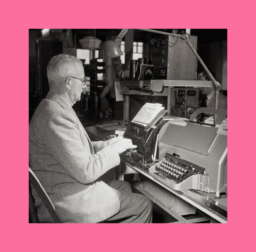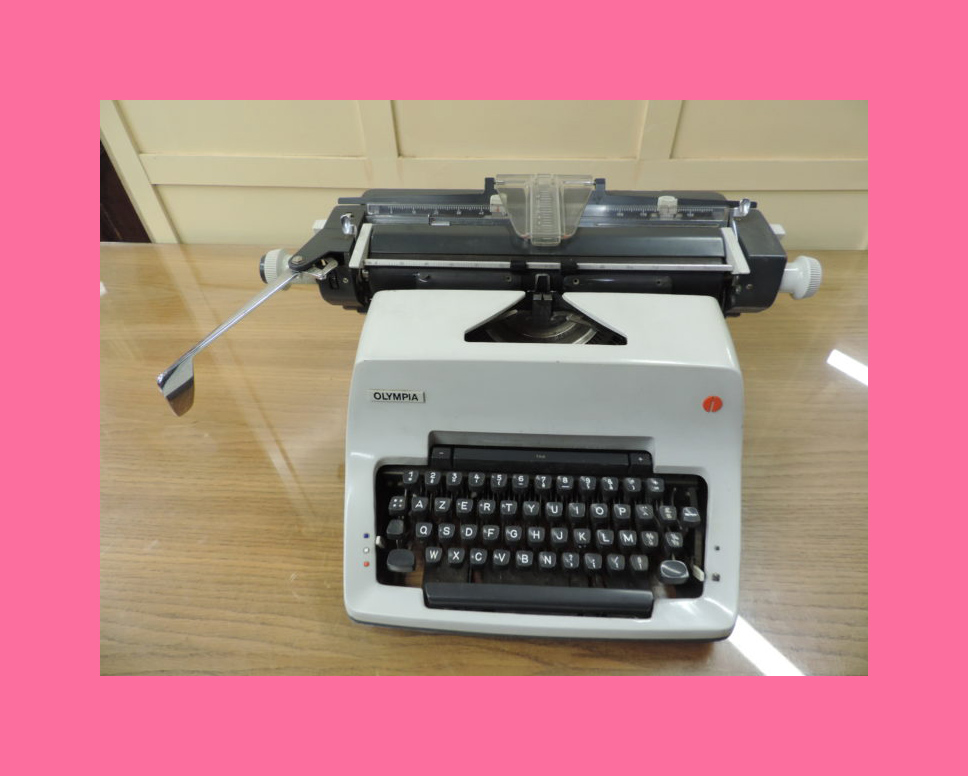 Back into Wales again, and here is Elgin, typing the letters C H I C K E N P O X on an Olympia SG3 typewriter – likely an early 1970’s model, based on the typeface used on the back.