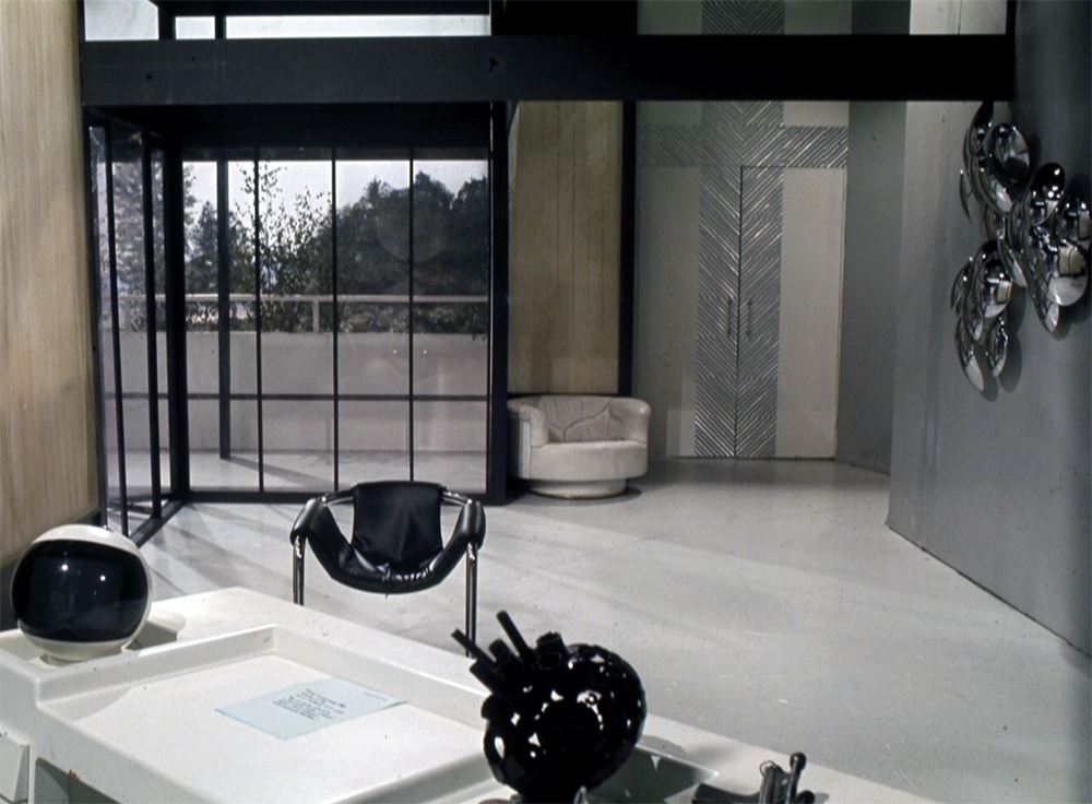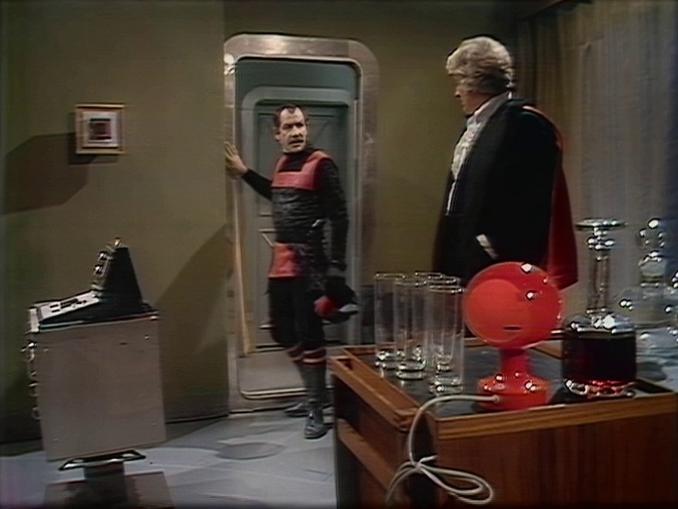 Back to Pertwee’s second season, and in ‘Colony in Space’, we have this ‘Astronaut’ glass lamp by Michael Bang for Holmegaard, Denmark 1967. One of Bang’s challenges was to steer lighting production in a more artistic direction. Looking at how the lamp stands out in the drabness of the IMC ship, I think he was successful!