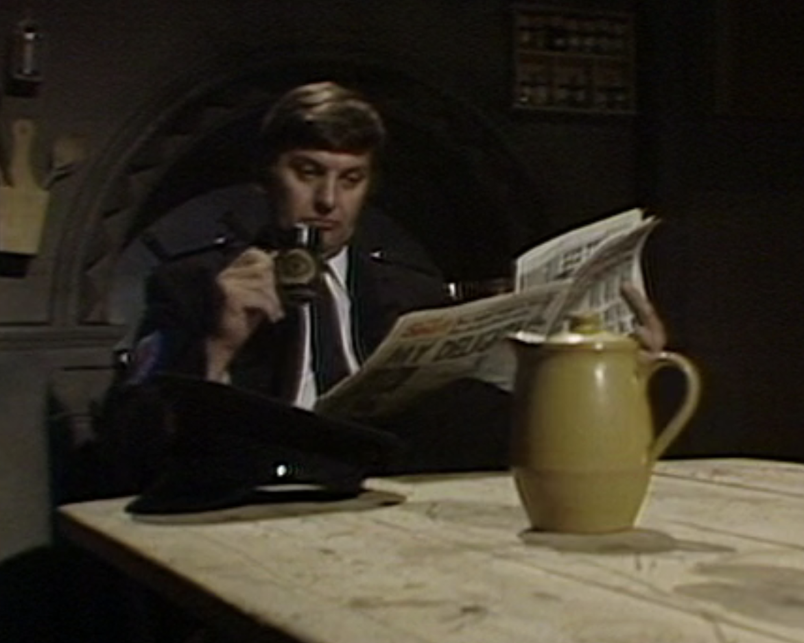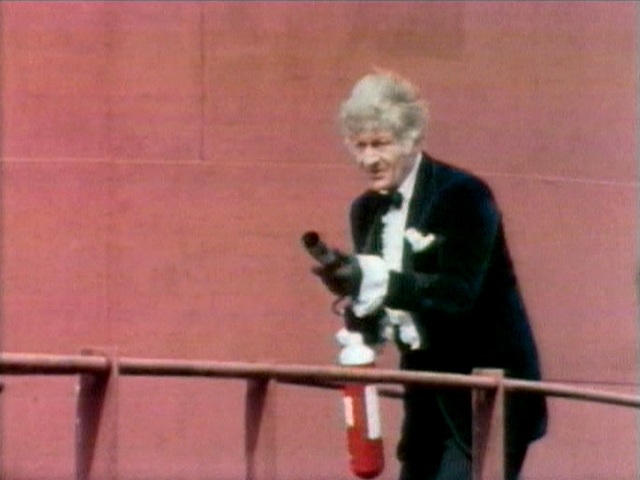 This rather fine looking object is not a camera, but a Noris Plank 300 metal slide projector from the late 1950s. It’s for those detective moments, proving how clever the Doctor is. I’m sure Pertwee had it written into his contract that he must look clever at least 10 times per episode.
