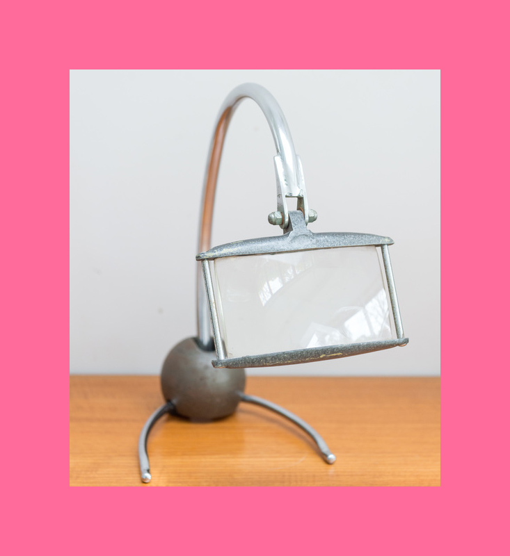 Whenever I see a magnifier, my mind immediately thinks of that shot of Nyder’s eye looking through the Doctor’s pocket clutter on Skaro. However, it’s easy to forget that the Master also enjoys a Big-Eye-Close-Up (BECU) via this Enbeeco desk top scientific magnifier. England, circa 1930.
