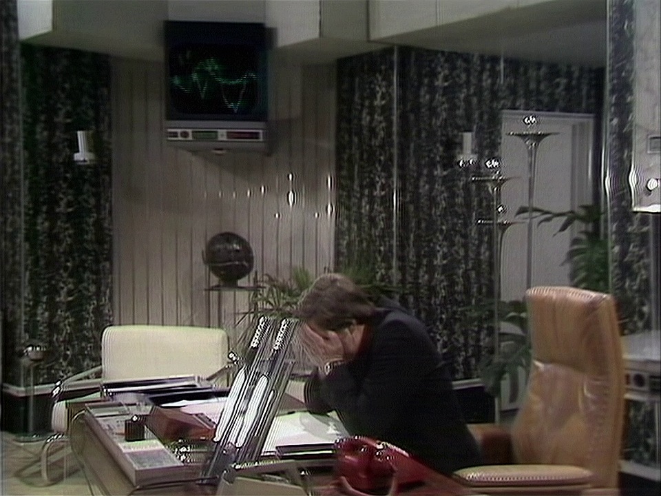 ‘The Mind of Evil’ features this B-2088 desk lamp, by Raak Amsterdam, 1960’s, prior to wibbly-wobbiness.