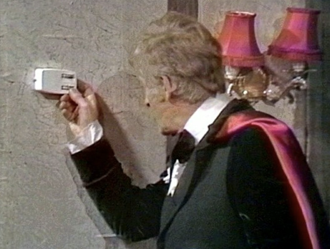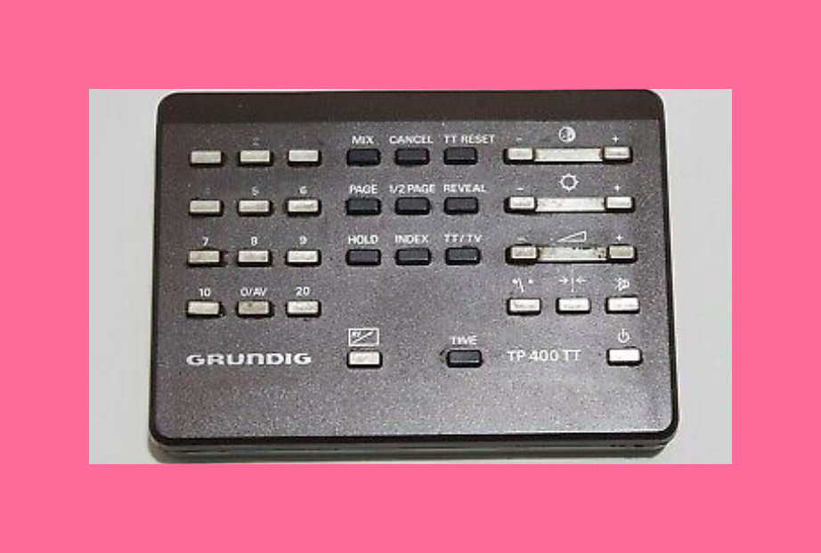 This one has been identified on a number of forums, but here it is again. This is the TP400TT Grundig remote control. Press the reveal button and “we shall all feel a lot better.” Kudos to John Normington for following directorial advice and placing a thumb over the company logo.