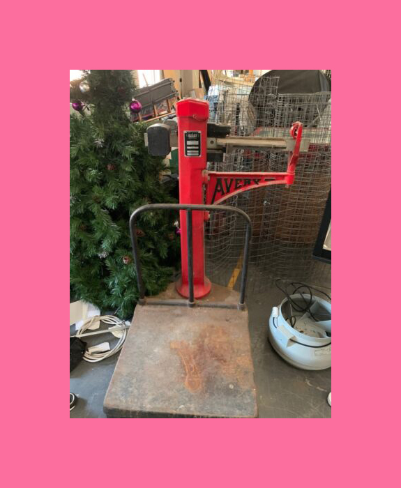How much does a Policeman weigh? Only one way to find out – secure him to this Avery 500lb industrial weighing scale.