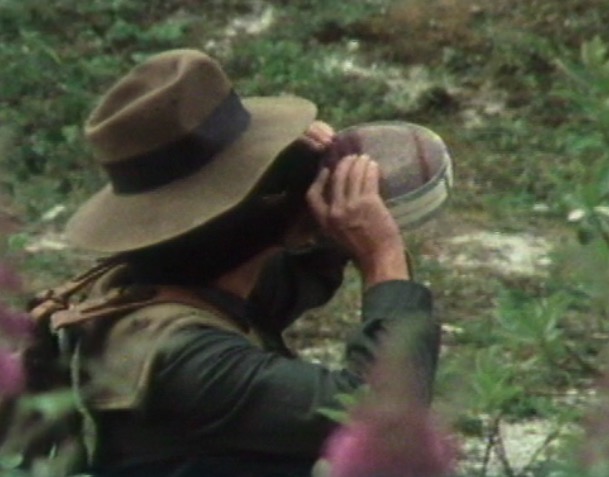 Elsewhere, in another rural videotaped pasture, Romana wears this Burberry newsboy hat, 1970’s.