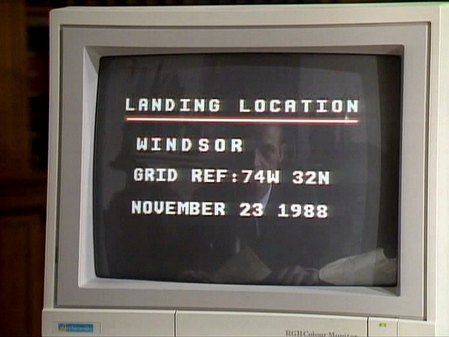 Modern-day England now, and the neo-Nazis locate Windsor, via this 1980’s Commodore RGB computer monitor – probably one of the 1084 range, and a part of the Acorn Archimedes, released the previous year. For more computers, https://www.starringthecomputer.com/ is a strong recommend.