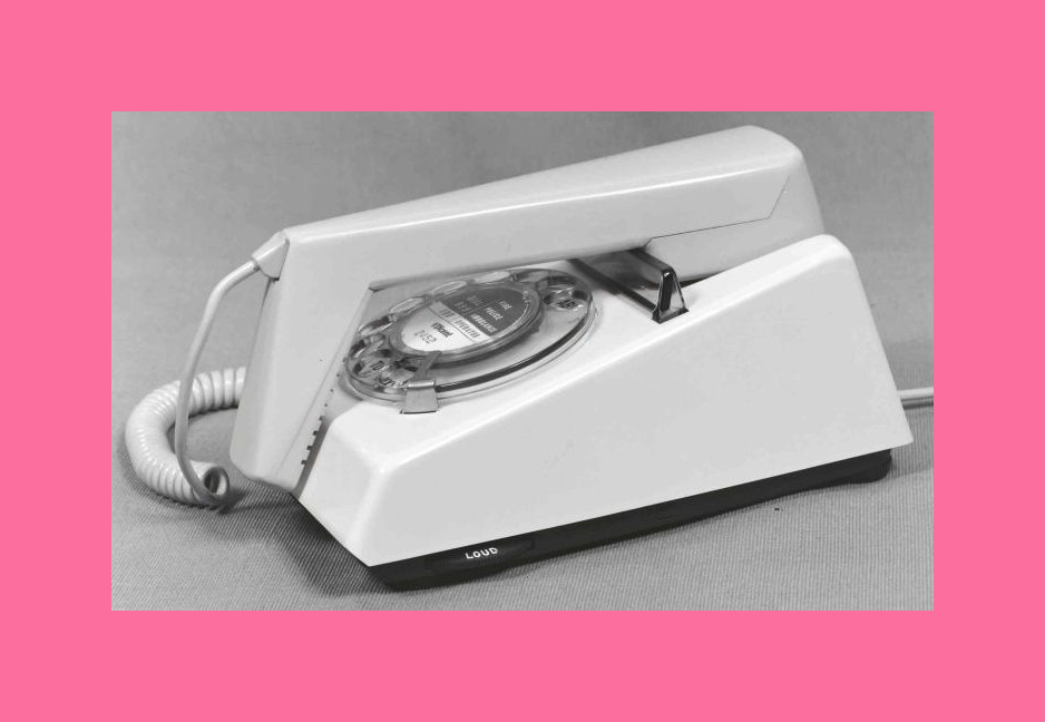 One of the classic artifacts now – the General Post Office’s Trimphone (1964). Sleek, practical, and with a hint of radioactivity to make the dial glow – no public health warning is needed with these phones!