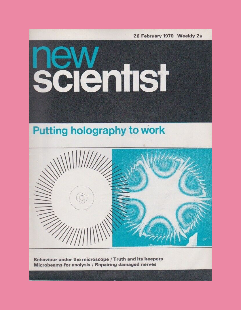 Poking out just behind Science Journal, is New Scientist, 26 Feb 1970. This includes features on Holography, Microbeams, and damaged nerves.