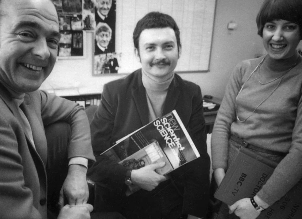 Union House, Shepherd’s Bush, the Doctor Who production office – room 505. Terrance Dicks clutches the essential ‘Doctor Who in an Exciting Adventure with the Daleks’ by David Whitaker, likely the 2nd edition, published by Muller in 1965. Cover by Arnold Schwartzman OBE – you can find out more about him here.