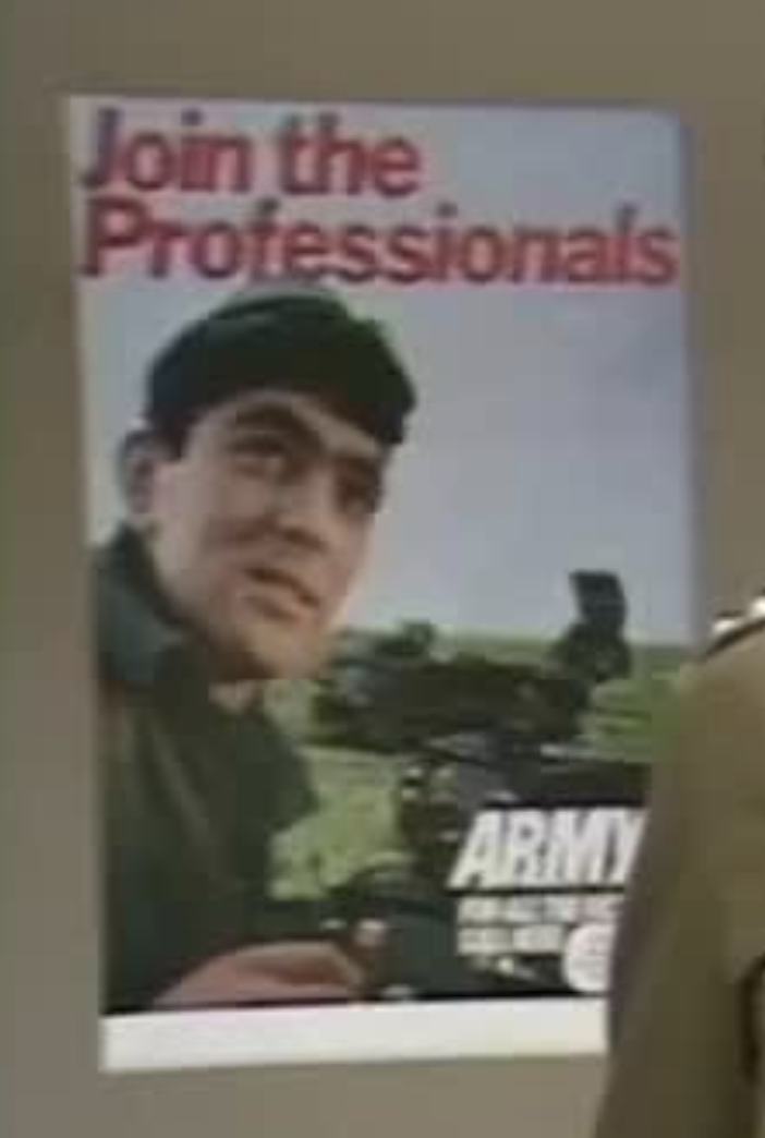 Back underground again, that the Army recruitment poster seen in ‘Invasion of the Dinosaurs’ is visible to the world, but the origin remains untraceable. It did appear in a 1969 episode of Monty Python though.