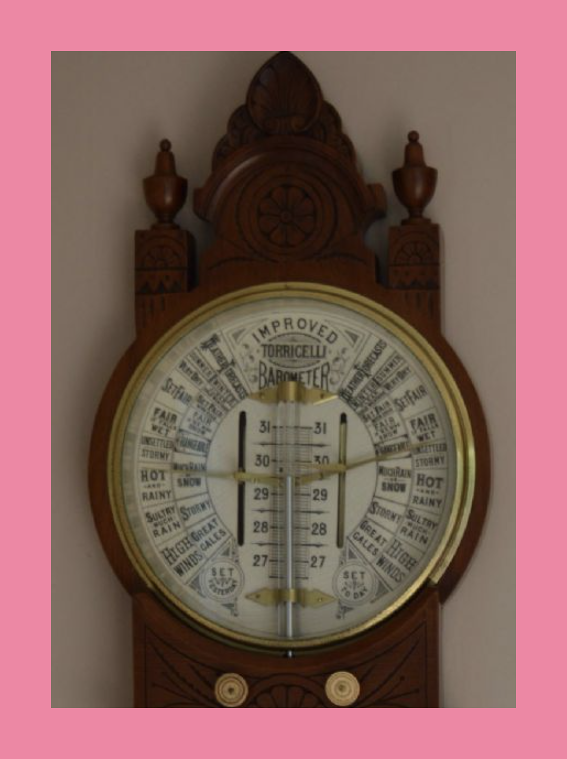 Another item that pops up in the UNIT lab is this Admiral Fitzroy Polytechnic barometer from the late 19th century.