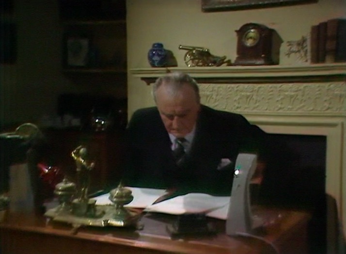 Another desk, in another time. Commander Millington tries to get into a Nazi mindset, although aesthetically I would question the use of this Bakelite Telephone by ATM. Model 332 in jade green, dated 1956/7. However, it does make the surroundings ‘pop’ a little.